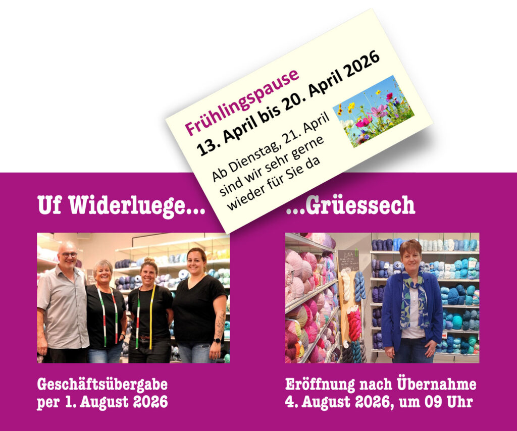 Nach bald 11 Jahren zieht sich Jacqueline Sterchi aus dem Berufsalltag zurück und übergibt ihr Geschäft an ihre Nachfolgerin Yvonne Bachmann. Wir freuen uns sehr, dass es uns gelungen ist die Nachfolge für unser beliebtes Ladengeschäft zu regeln.
